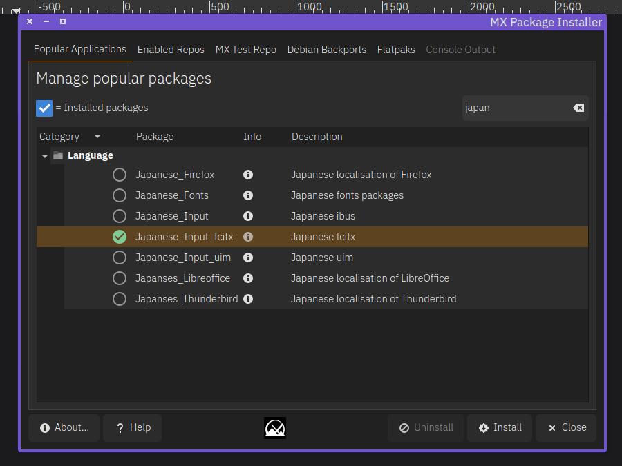 日本語入力メソッドの「fcitx-mozc」は初期のextroxではプリインストールして